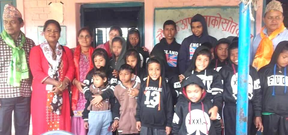 सुनसरी, कात्तिक १६ गते । सुनसरीको झुम्कामा कार्यरत थारु महिला उत्थान समाजले स्थानीय रामधनुी ३ स्थित जनता माध्यमिक विद्यालयका अपाङ्गता भएका २१ जना विद्यार्थीलाई जाडोमा लगाउने जंक–शुट थान २१ वितरण गरेको छ ।
