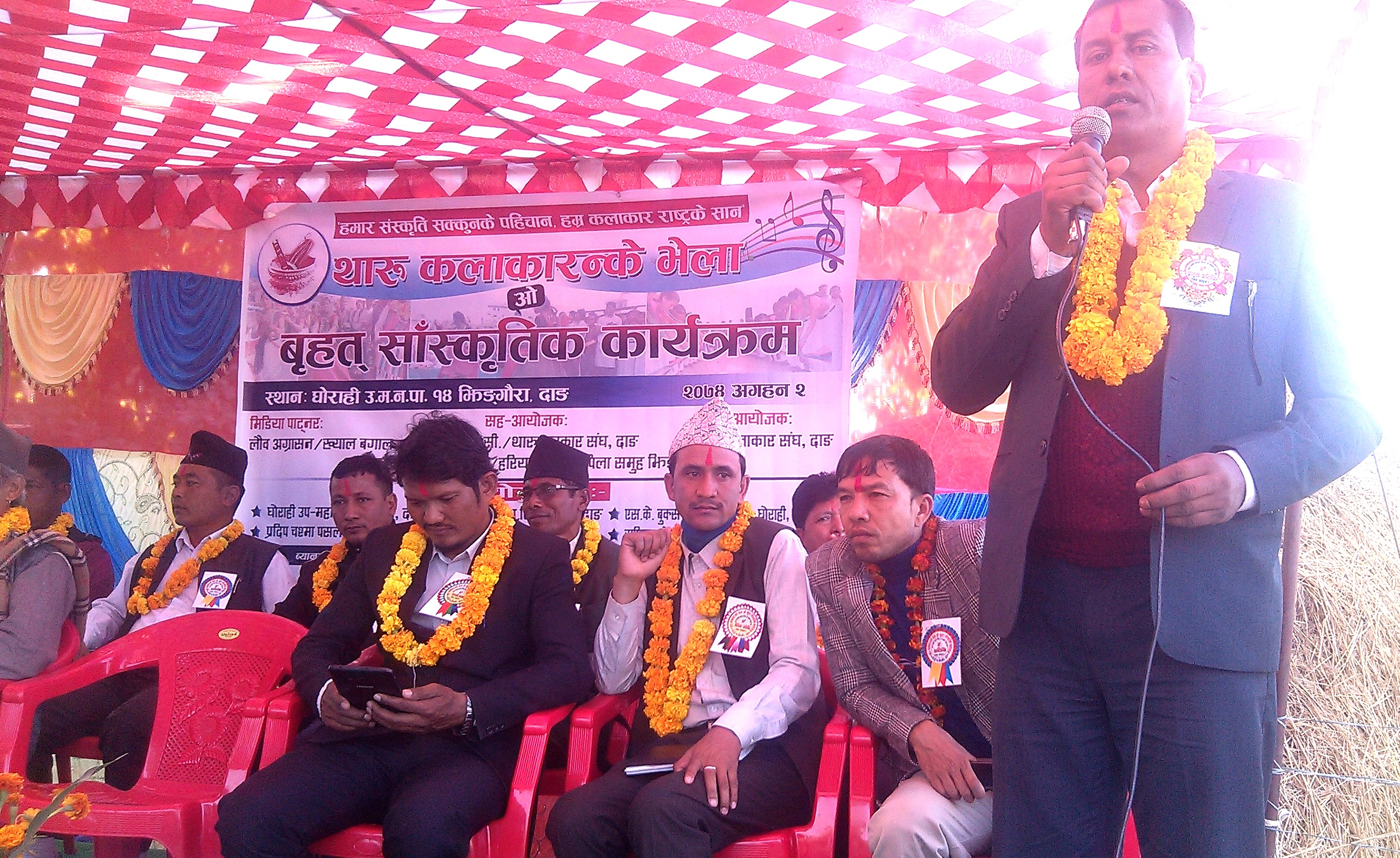 सांस्कृतिक कार्यक्रमका संयोजक शालिकराम चौधरीको अध्यक्षता तथा घोराही उपमहानरपालिकाका प्रमुख नरुलाल चौधरीको प्रमुख आथित्यमा भएको कार्यक्रममा बोल्ने बक्ताहरुले थारु संस्कृति संरक्षणका लागि अब थारु कलाकर्मीहरु नै एकजुट भएर लाग्नुपर्ने बताए ।