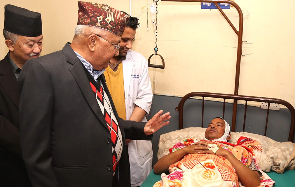 ‘उपचार खर्च सरकारले व्योहोर्छ’ प्रधानमन्त्री ओलीले भन्नुभएको छ ‘उहाँको उपचारमा कुनै कसर बँँकी नराख्नुहोला ।’