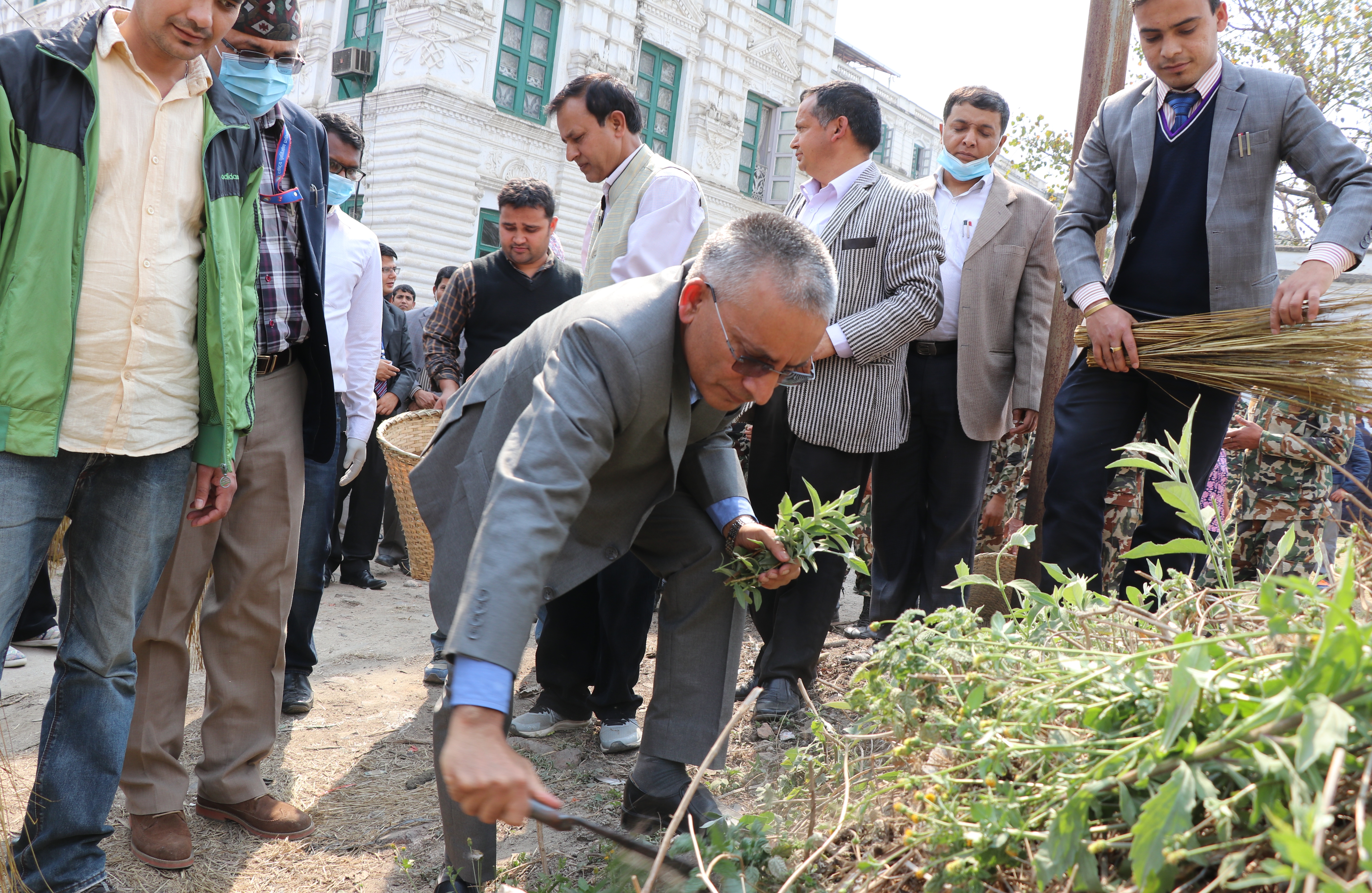 सधैं कुर्सीमा बसेर फाइल पल्टाउनमै व्यस्त रहने कर्मचारीहरु सबैले हातमा झाडु लिएर सरसफाईमा उत्रेका थिए । सरसफाईमा प्रधानमन्त्रीका राजनीतिक सल्लाहाकार बिष्णु रिमालले झाडु लगाउँदै अभियानलाई निरन्तरता दिन कर्मचारीहरुलाई आग्रह गरे ।
