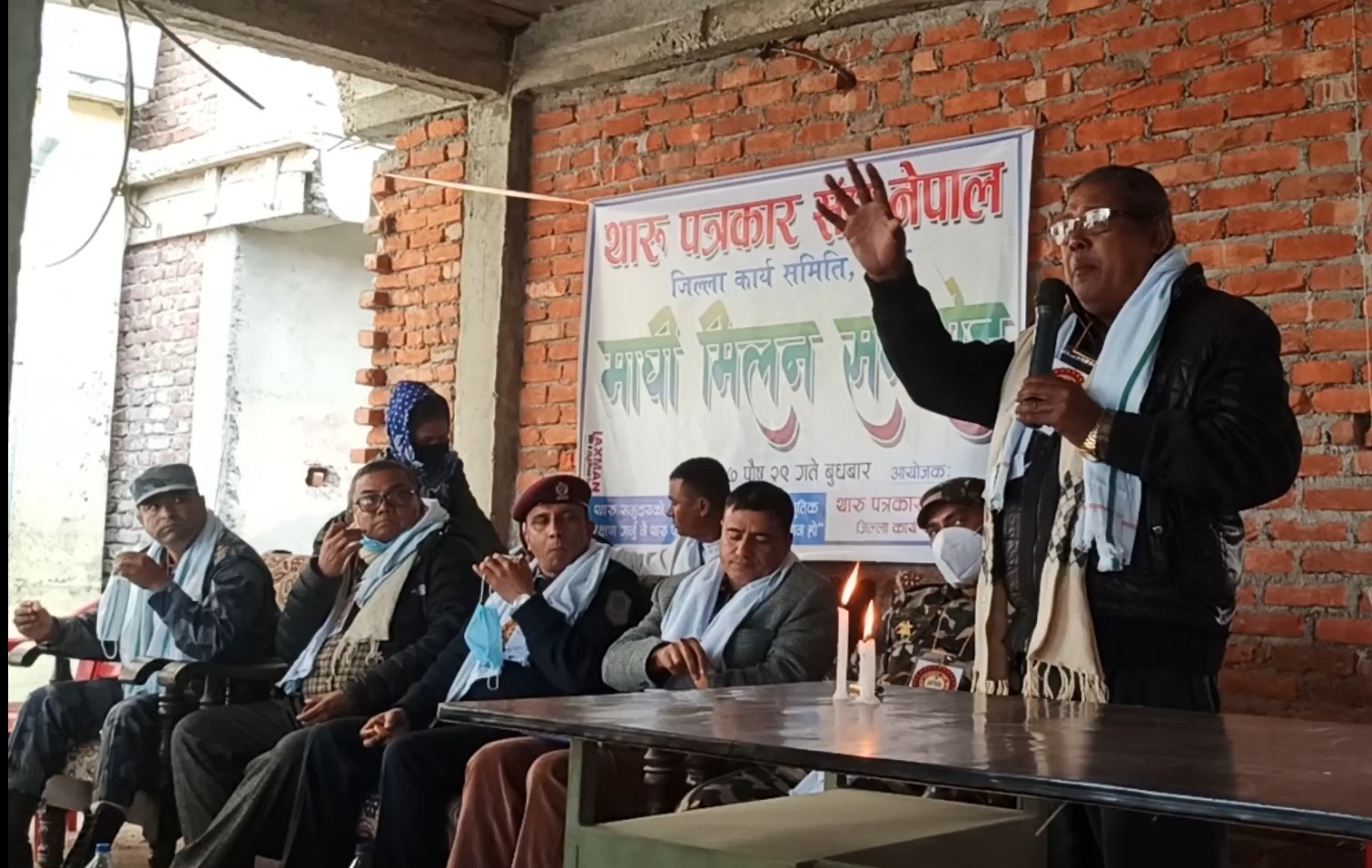 कोल्हबी, माघ १ गते । थारु समुदायको नयाँ वर्ष माघी २०७७ को अवसरमा शुभकामना आदान प्रदान कार्यक्रम सम्पन्न भएको छ । पत्रकार संघ नेपाल बारा शाखको आयोजनामा बुधवार आयोजित कार्यक्रममा पर्वको शुभकामना तथा समिक्षा गरिएको हो ।