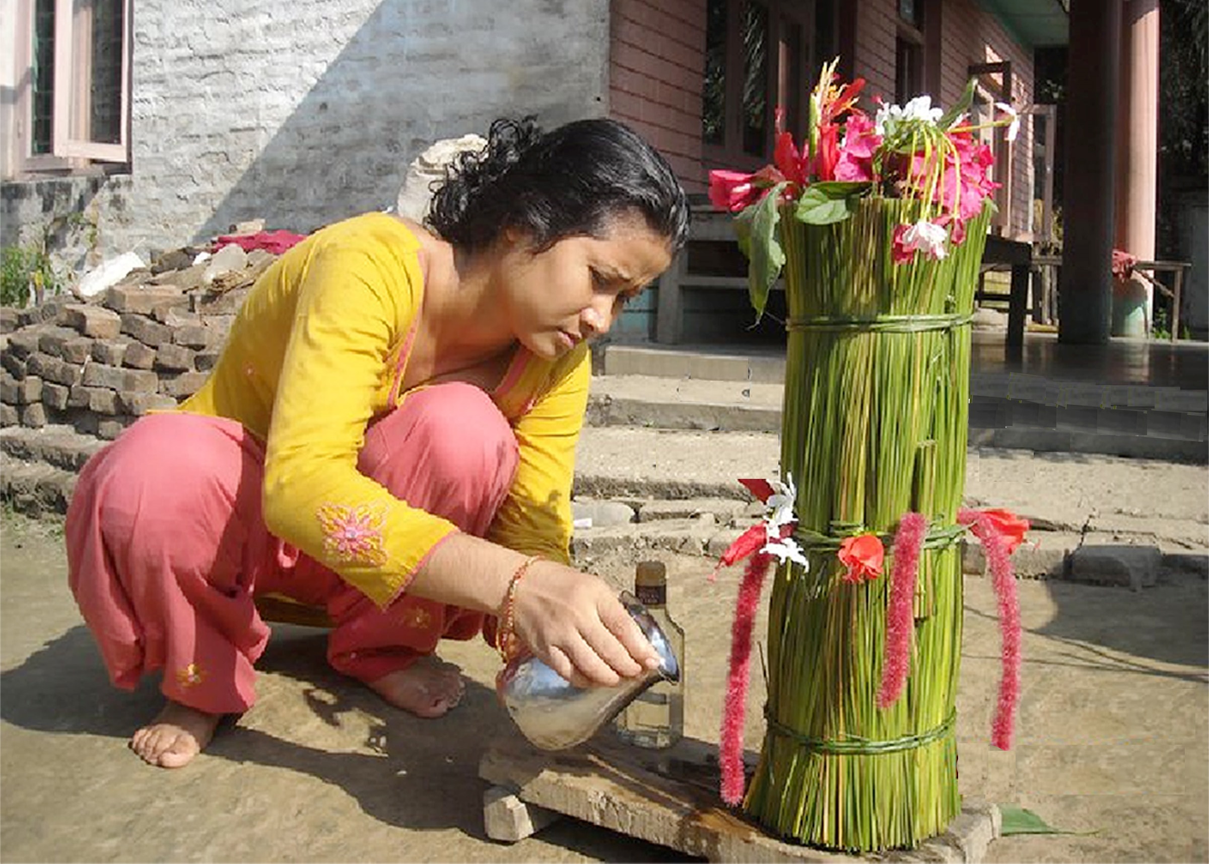 पहुनीलाई विभिन्न थरीका पूmलहरुले सिंगारिन्छ । घाम नलागोस् भनी छाता वा छतिया ओढाइन्छ । पहुनीको अगाडि ल्वाङ, सुकमेल, पान, सुपारी, सुर्ती, चुरोट, रक्सी र पानी राखिन्छ । त्यस दिन बिहानै बालबच्चादेखि बुढाबुढी सबैजना नुहाई कुशपानीले पितृगणलाई तर्पण गरिन्छ । त्यसपछि गच्छेअनुसार नया“ कपडा वा सफा कपडा लगाएर पहुनीको अगाडि बसेर प्रत्येकले रक्सी र पानीको केही थोपा चढाउने (छाकी चढोई) गरिन्छ । यदि त्यसवर्षमा परिवारका कुनै सदस्यको मृत्यु भएको छ भने यमोसाकै दिन बोका काटेर रगत चढाउने गरिन्छ ।