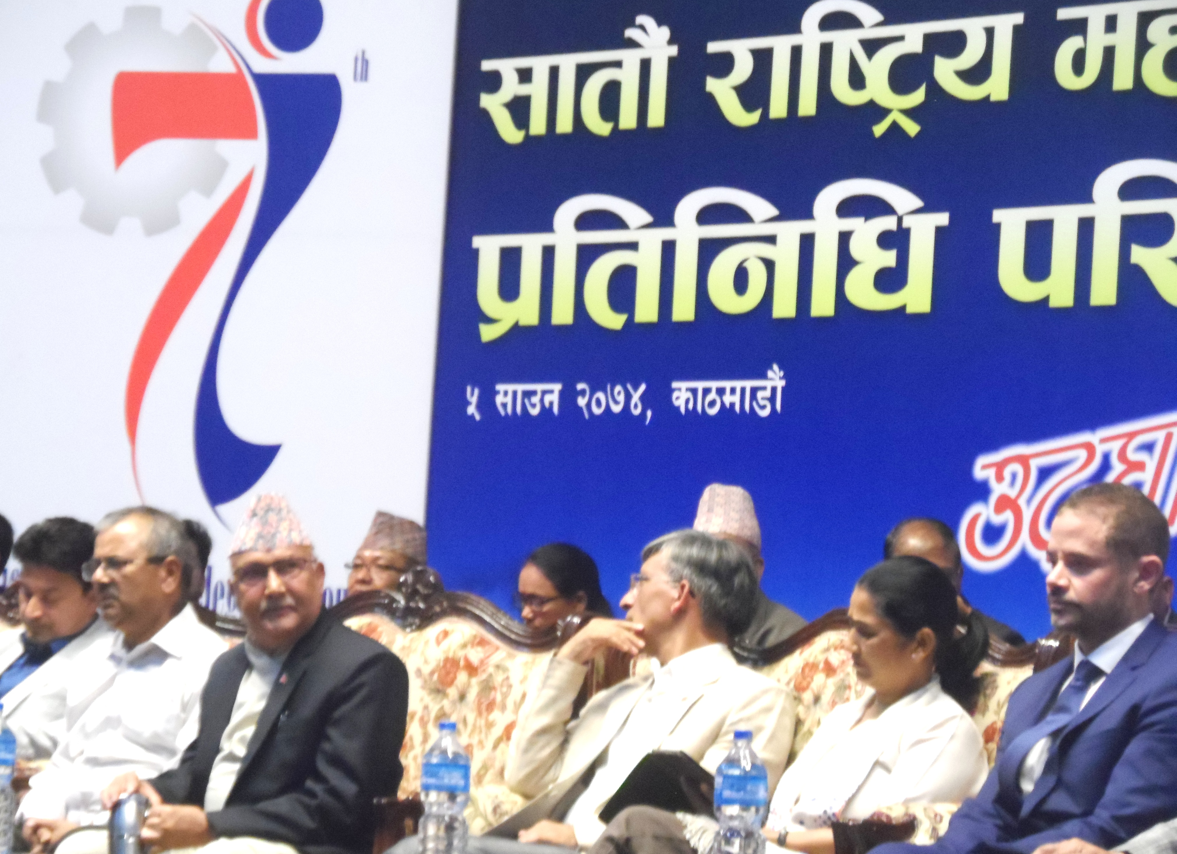महाधिवेशन प्रतिनिधि परिषदका मुकुन्द न्यौपानेको अध्यक्षतामा भएको कार्यक्रममा एमाले सचिव तथा मोर्चा संगठनका प्रमुख गोकर्ण विष्ट, आई.एल.ओ. कन्ट्री डाइरेक्टर रिचार्ड हावार्ड, नेपाल प्रतिनिधि विन्दा पाण्डे लगायतले श्रमिक अधिकार र खेल्नुपर्ने भूमिकाका विषयमा चर्चा गर्नुभएको थियो । कार्यक्रममा सातवटै प्रदेशबाट श्रमिकको तर्फबाट निर्वाचित जनप्रतिनिधिहरुलाई अध्यक्ष ओलीले मायाको चिनो प्रदान गर्नुभएको थियो ।