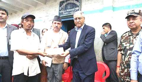 सरकारले बाढी पहिरोमा परी ज्यान गुमाउनेका परिवारलाई जनही दुईलाख रुपैयाँ दिने निर्णय गरेको छ। सोही अनुसार प्रधानमन्त्री देउवाले कमिलाल थारुलाई ६ लाखको चेक हस्तान्तरण गरे ।