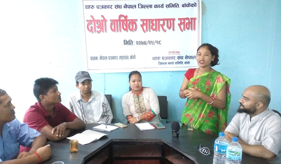 नेपालगञ्ज, भाद्र १८ गते । थारु पत्रकार संघ नेपाल बाँके शाखाको दोस्रो साधारणसभा आइतबार यहाँ सम्पन्न भएको छ । साधारणसभामा सांगठनिक प्रतिवेदनमाथि छलफलभ एको थियो ।