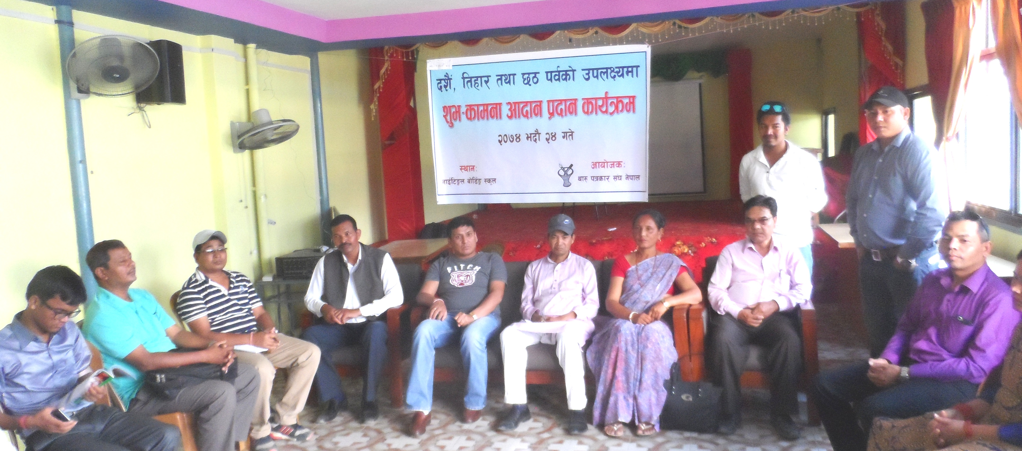 दशैं, तिहार, छठ, जितिया र सामाचकेवा पर्वको अवसरमा थारु पत्रकार संघ, नेपालको आयोजनामा शनिबार यहाँ आयोजित शुभकामना कार्यक्रममा अगुवाहरुले त्यस्तो सुझाव दिनुभयो । कार्यक्रममा थारु अगुवा तथा प्रतिनिधिहरुले सो पर्वको अवसरमा शुभकामना साटासाट गर्नुका साथै थारु हक अधिकार तथा थारुको राजनीतिक, सामाजिक, सांस्कृतिक पक्षको उजागर गर्न विशेष खोजपूर्ण समाचार पस्कन आग्रह गर्नुभयो ।
